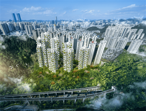 露台交付的时候,会种植一些绿植,呈现一种垂直“森林”和诗意生态居住的感觉。