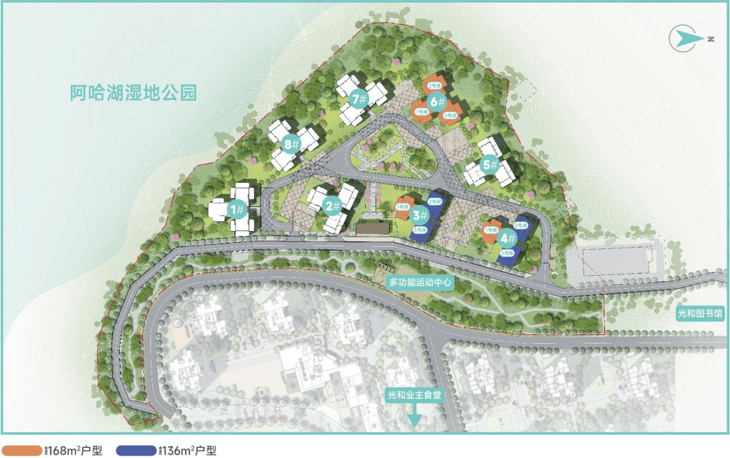 结合位置和效果图,“花语墅”的位置细节优势是十分明显的,组团紧临阿哈湖湿地公园,能最直接地享受到公园的景观视野,部分高楼层还能看到阿哈湖湖景。