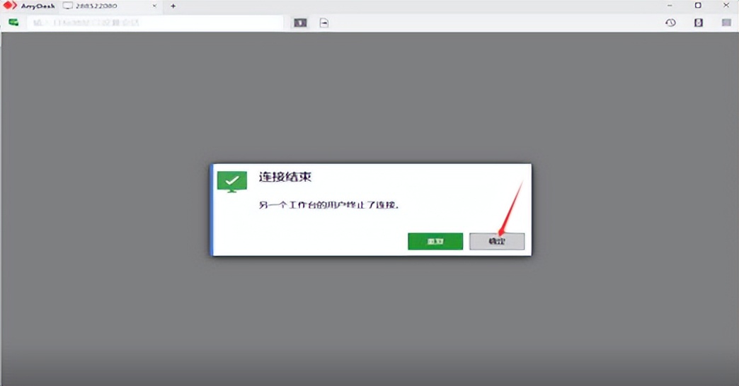 5.受控端点击结束后,控制端会弹出连接结束的窗口,点击确定即可结束本次操作。如果想再次连接,点击重复。