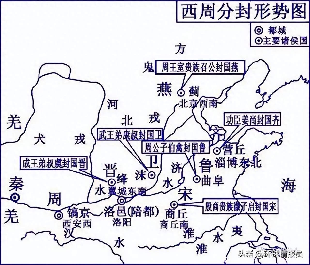 公元前1046年,武王伐纣灭商建立西周王朝。周王室(姬姓)本居住在关中地区,八百里秦川的肥沃土地滋养,以及周围群山的保护,才让本为商王朝臣属的姬姓家族积蓄力量推翻商朝。