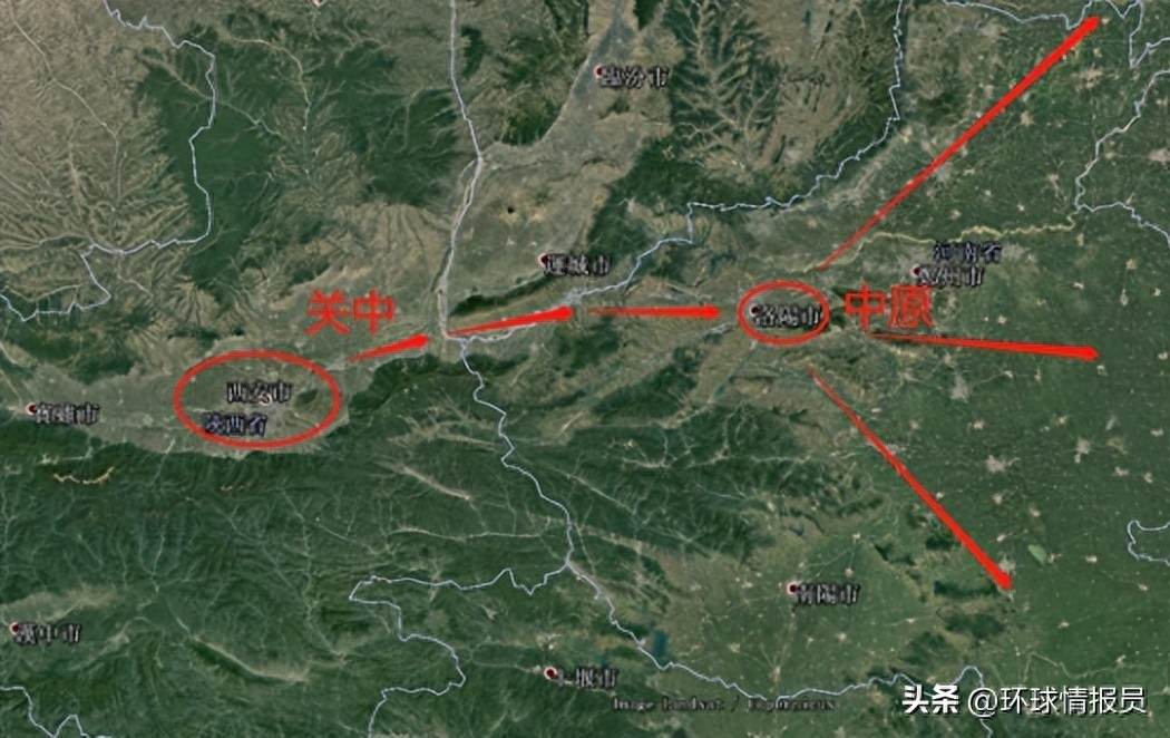 ▲关中平原与洛阳地理关系(图片来源@雪白血红)