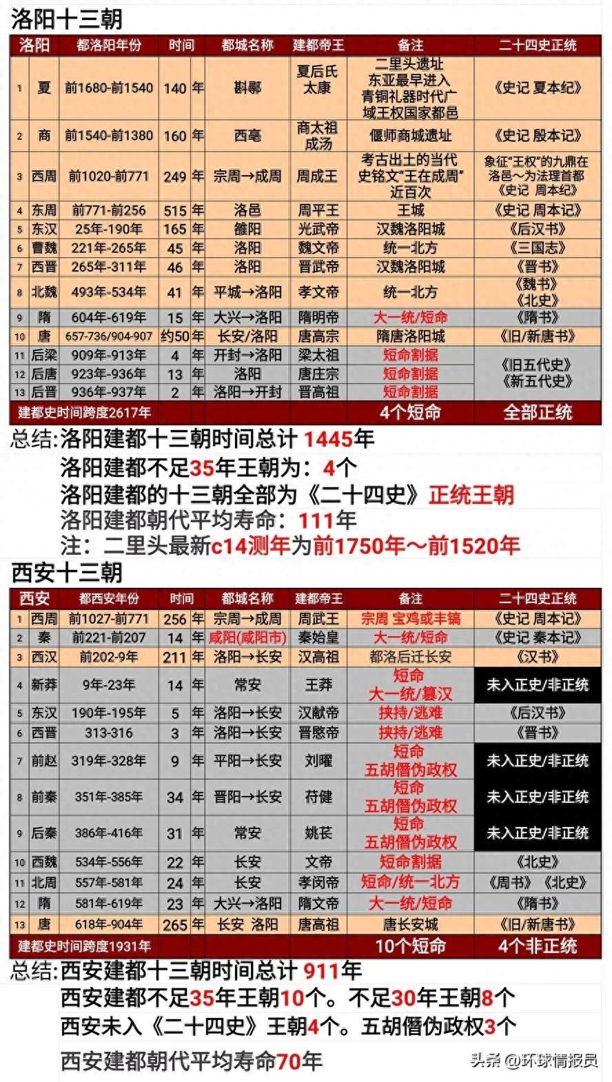 从第一个奴隶王朝夏朝到第一个封建王朝秦朝,超过1500年的历史中,洛阳先后四代为都(夏、商、西周、东周),长安则只有两朝(西周、秦)。