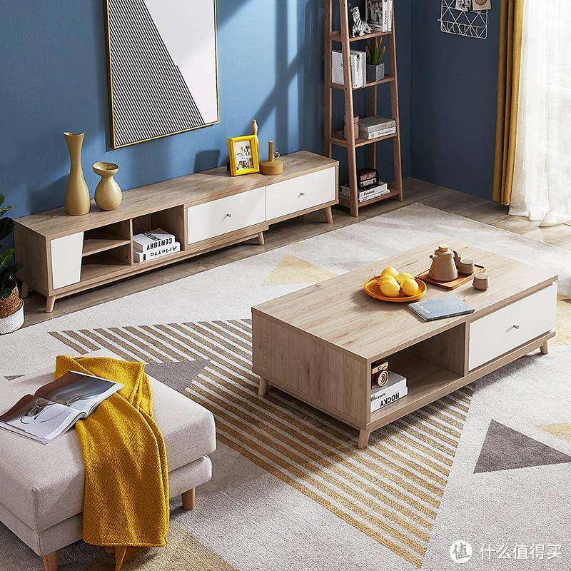 采用留白设计美学,让茶几电视柜温暖且时尚,半开放储物设计,开放区前后通透,双向拿取物品便利。两者结合,提供不错的储物空间,也可用来收纳客厅中的必需小物件,保持客厅整洁有序。