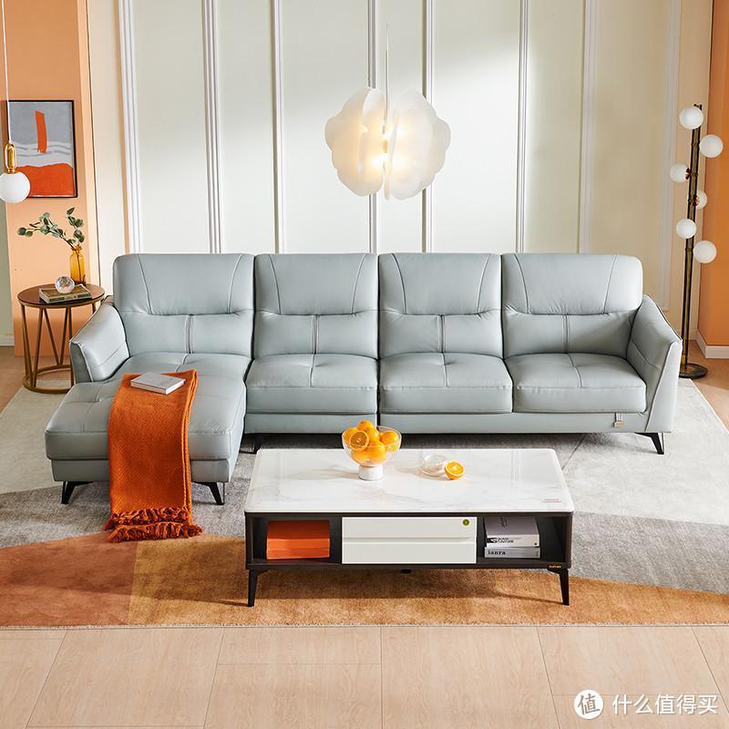 而对于像我这样热衷皮制家具的用户,我推荐这款全友牛皮沙发。目前这款沙发提供【浅灰蓝】与【时尚橙】两种配色,满足不同家装色彩搭配的需求。