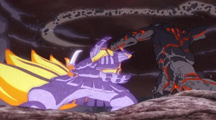 忍术交锋之后他们又进行了一场“高达”之间的交锋,佐助的须佐能乎,鸣人的九尾模式,加上桃式召唤出的岩石巨人,这样的“高达”大战看得观众是大呼过瘾,最后佐助和鸣人的威装须佐能乎一刀砍爆岩石巨人的画面也是让观众热血沸腾。