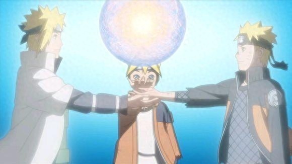 虽然最后片助先生和他的助手溜进去战场,使用了科学忍具让桃式再次吸收了忍术有了一战之力,还控制了鸣人等人,但是此时博人的隐形螺旋丸发威,成功击倒了桃式,解除了众人的控制。最后鸣人博人父子搓丸子的时候,画面中浮现出来的自来也、波风水门、漩涡玖辛奈、宁次等人更是让观众泪奔。