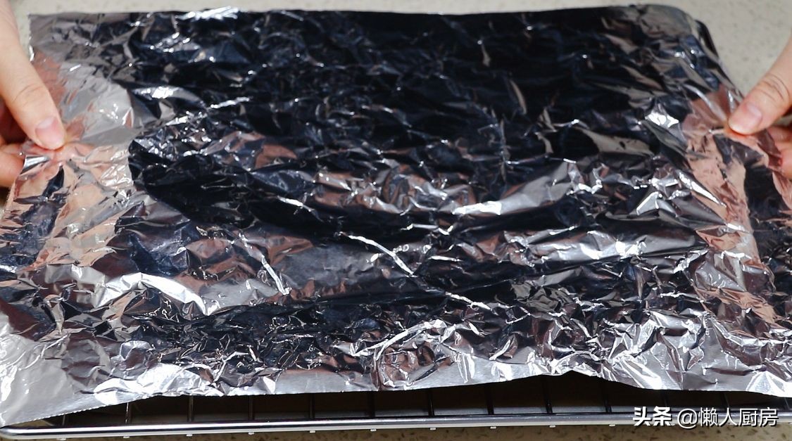 把腌制好的鱼肉,整齐地码放上烤架上面,盖上一层锡箔纸,放入烤箱,用上小火230度烤一个小时。