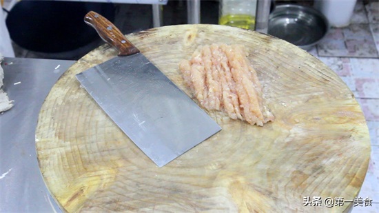 先把肉剁成碎沫,最后再用刀背剁成肉泥。