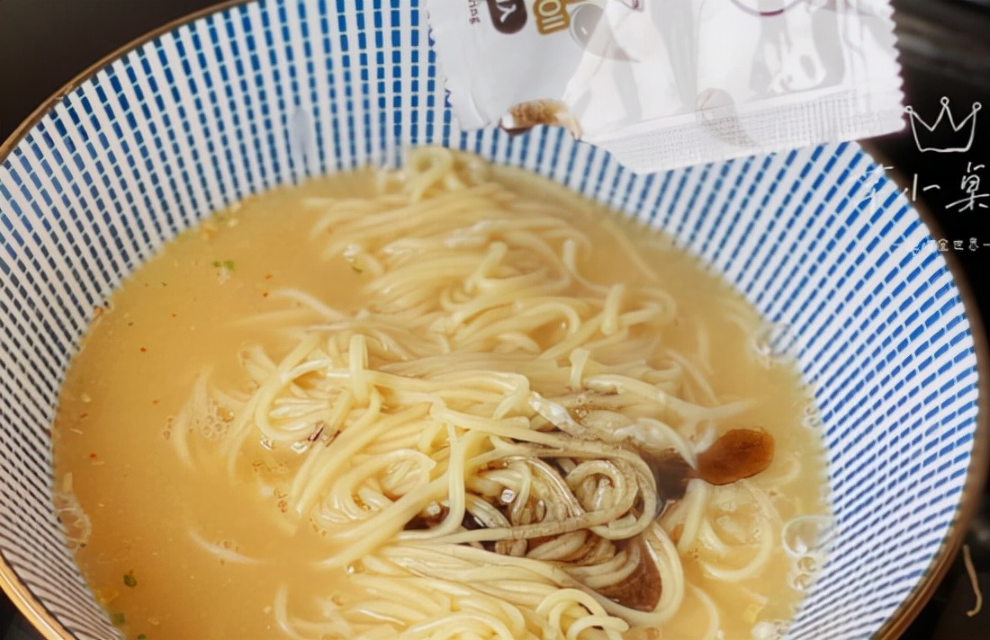 测试这款完全出于好奇,想看看韩国人出的上海汤面会不会很离谱。汤底质地有点浓稠,观感上更像是豚骨拉面,粉包下进去后会有短暂的结块,这个感受不太好,整体面条略细一点,跟汤汁裹到一起。虽说跟正宗上海汤面毫无关系,但其实整体口感还是可以的,偏咸一点点。