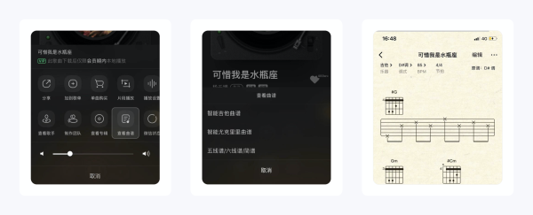 查看曲谱是一个非常实用的功能,对于很多音乐爱好者来说,当在某个夜晚抱着吉他想弹奏某一首歌曲,你只需要打开「查看曲谱」,里面包含了智能吉他曲谱、智能尤克里里曲谱以及五线谱/六线谱/简谱。进入曲谱后,你还可进行自由编辑,比如编辑和弦、更改时值等。