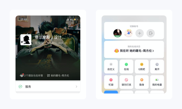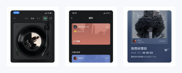 利用腾讯强大的产品生态,用户还可以把听歌状态同步到微信和QQ,这不仅可以满足年轻用户个性化的追求,还能通过外部触发拉新引流。