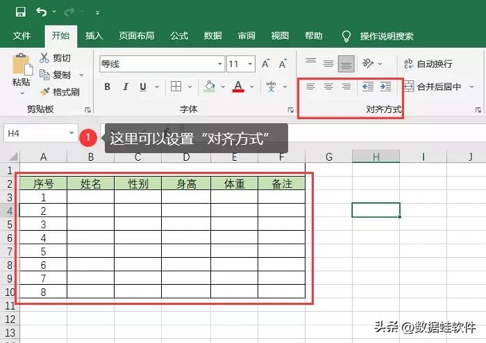 在表格内输入文字后,如果想要设置文字的格式、大小、字体颜色、对齐方式等等,都可以在【开始】菜单栏目内找到对应的设置。比如【开始】页面的【对齐方式】,我们可以选中要设置的单元格,点击【对齐方式】里面的居中来设置。