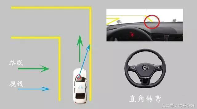 1、每个考场直角转弯有些是向左,有些是向右,在向左转弯时,需要调整车身与左侧边线30cm的距离,观察车头三分之一处或者雨刷器最高点与左边线重合