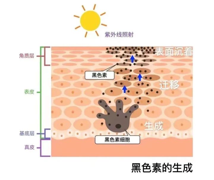 想要真正的美白淡斑,要懂得黑色素生成的原因。一是络氨酸酶激活黑色素的表达;二是生成的黑色素向表面迁移;三是黑色素达到皮肤表面沉积。那么这些问题有到底有没有根本的解决办法呢?