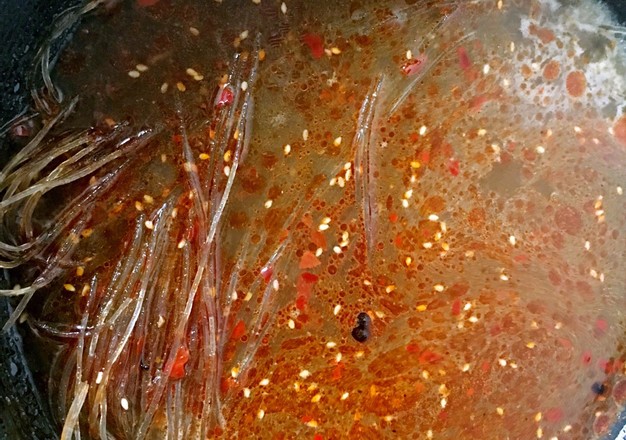 1分钟学会做正宗酸辣粉,比面条还好吃,酸辣爽口,3分钟就搞定!这几天总是下雨,就想吃一点热气腾腾的汤面来暖暖身子驱驱寒,但是面条又不够筋道弹牙,我就做了一锅酸辣粉来打打牙祭,儿子喜欢的不得了,一口气吃了2碗。酸辣粉的主要用的是红薯粉,软而有弹性,柔而有劲道,外表晶莹剔透,让人忍不住放在嘴里细细咀嚼一番。汤料以蒜末,辣椒油,香菜,花生等为主料,做好后还可以在表面撒一层芝麻,更加的引人食指大动。喜欢的朋友们可千万不要错过哦!