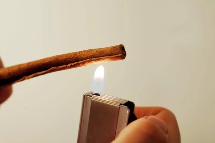关键二——让热红酒更芳香。选一根干肉桂,用火轻轻炙烤肉桂的一端,直到烤出浓浓的肉桂香,再放入杯中。加热后的肉桂,香味会慢慢的融入热红酒中,比煮好直接饮用要香醇很多。