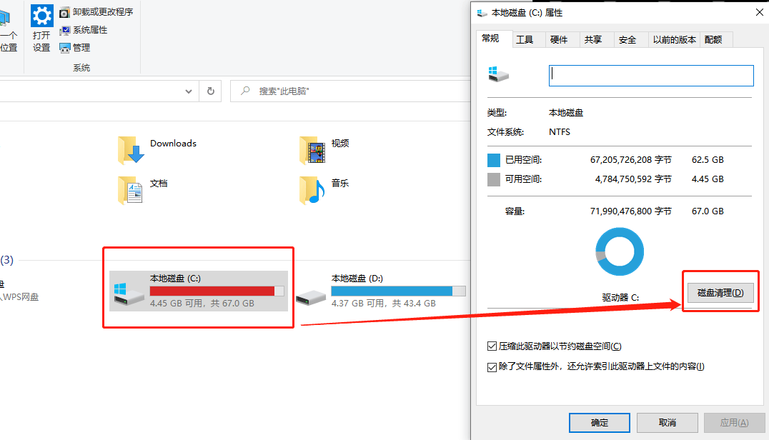 方法:我的电脑→选中要清理的磁盘→点击属性→磁盘清理