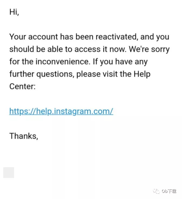 在回复邮件内填写完上面的信息后,如果账号成功解开禁用,官方将会发送如下图的通知邮件给你,一般在3个工作日内会收到回复。