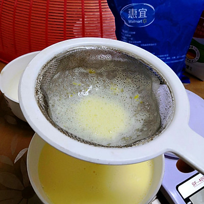 4、4.过筛,这个步骤要做几遍,保证蛋黄液细腻没有水泡和杂质