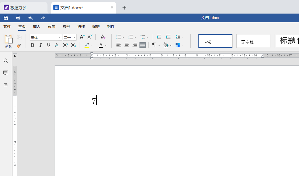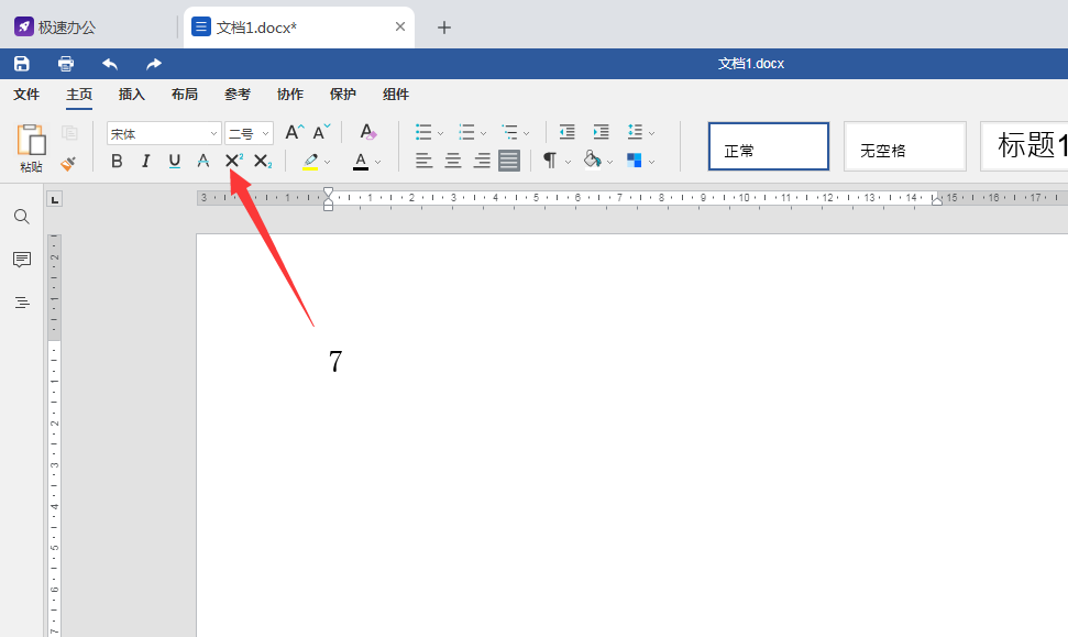1,打开新建好的word文档,本次通过输入一个7的平方为例,在编辑区输入数字7,如下图所示。