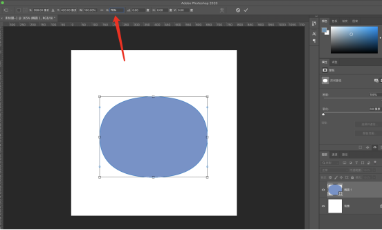 小白工具选中上下两个点–执行ctrl+T–更改H数值为75%(数值大小会决定超椭圆的圆度)