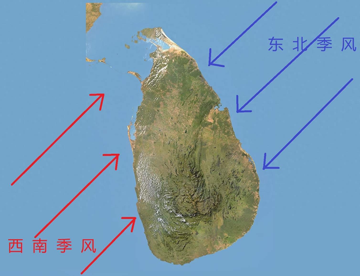 斯里兰卡地处低纬度热带地区,气候类型属于热带季风气候,气候特征表现为,终年高温,常年如夏,分明显的雨季和干季。当北半球夏半年时,盛行西南季风,携带大量来自印度洋的水汽,降水丰富,是雨季,而当北半球冬半年时,盛行东北季风,水汽较少,降水也较少,是干季。由于斯里兰卡是一个岛屿国家,周围海域面积广阔,气候总体上呈现海洋性特征。