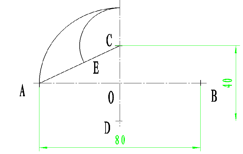 下面通过绘制长轴为80,短轴为40的 椭圆为例,学习四心圆法画椭圆。