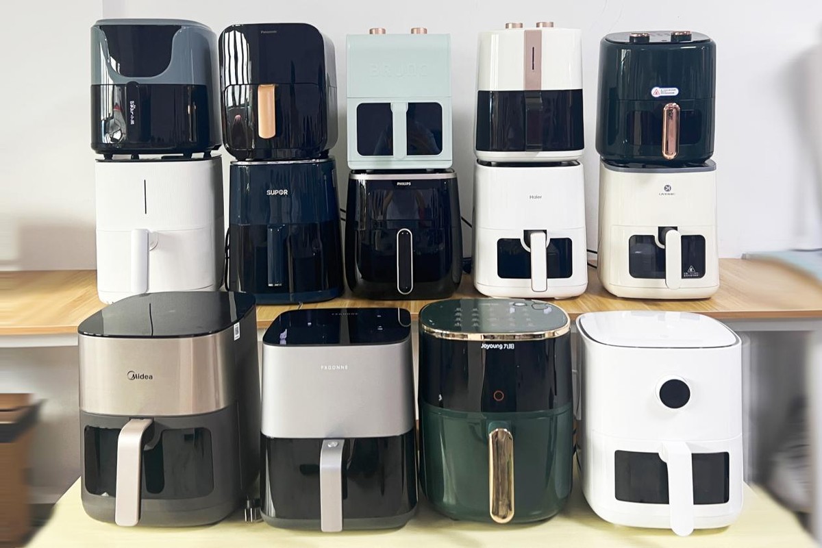 现在的年轻人越来越追求低脂健康的饮食习惯,在这种大浪潮下,也催生了一批黑科技家电产品诞生,空气炸锅就是其中之一。作为最近几年被Z世代追捧的小家电,空气炸锅可谓是荣誉满身,随手一搜就能检索到各种令人垂涎欲滴的空气炸锅美食,但在消费者跟风购买的浪潮下,也有不少人质疑,空气炸锅跟传统的锅具有什么不同?空气炸锅究竟是黑科技还是智商税?作为一名家电测评博主,为了更好地解决大家的疑问,今天我就从多个维度给大家分析空气炸锅的危害利弊,再给大家科普一些关于空气炸锅的知识。下面是我测评过的一部分空气炸锅产品图。