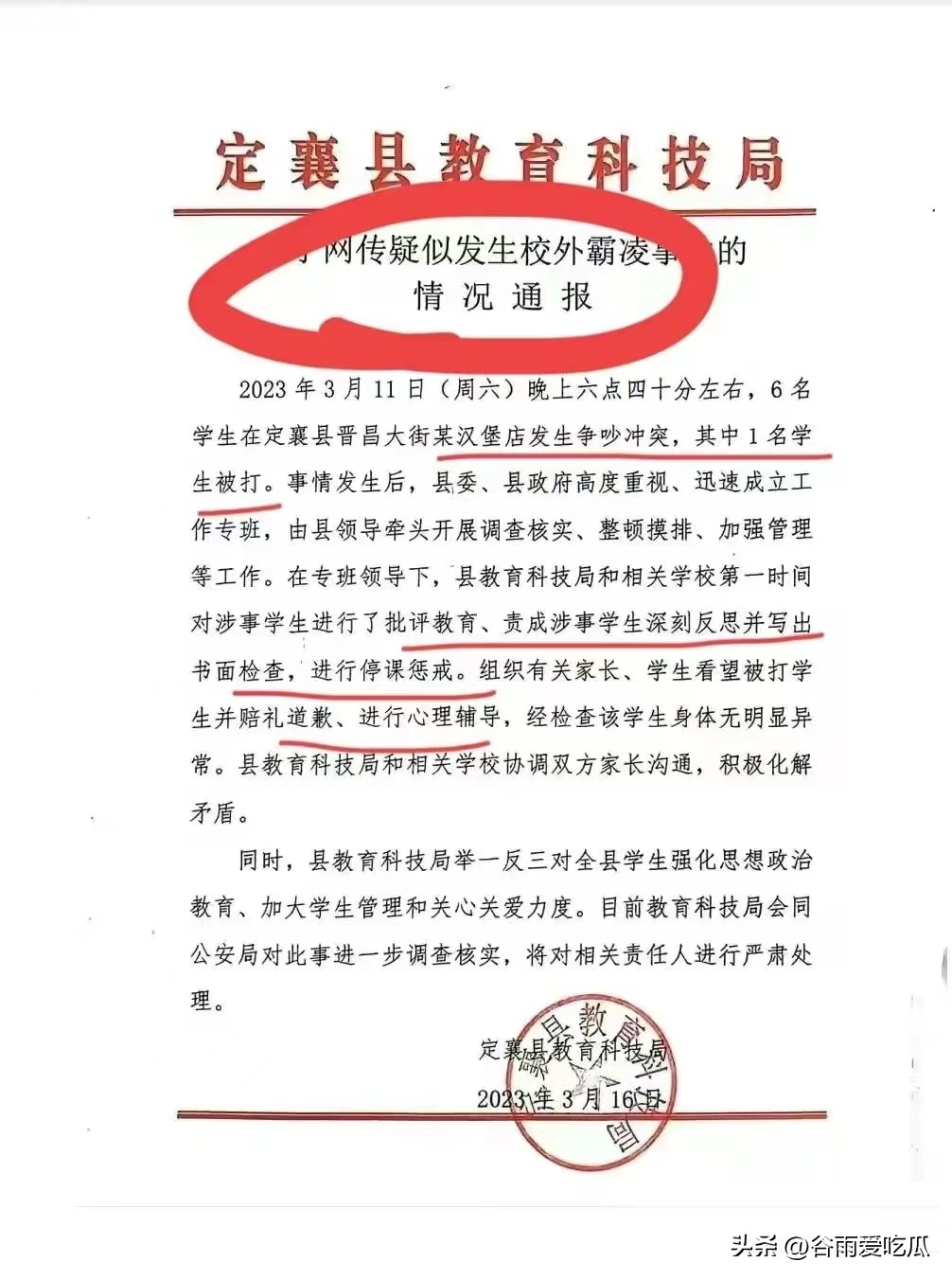 这一次让人心寒的不只是霸凌者和旁观者了,还有这则官方通报。