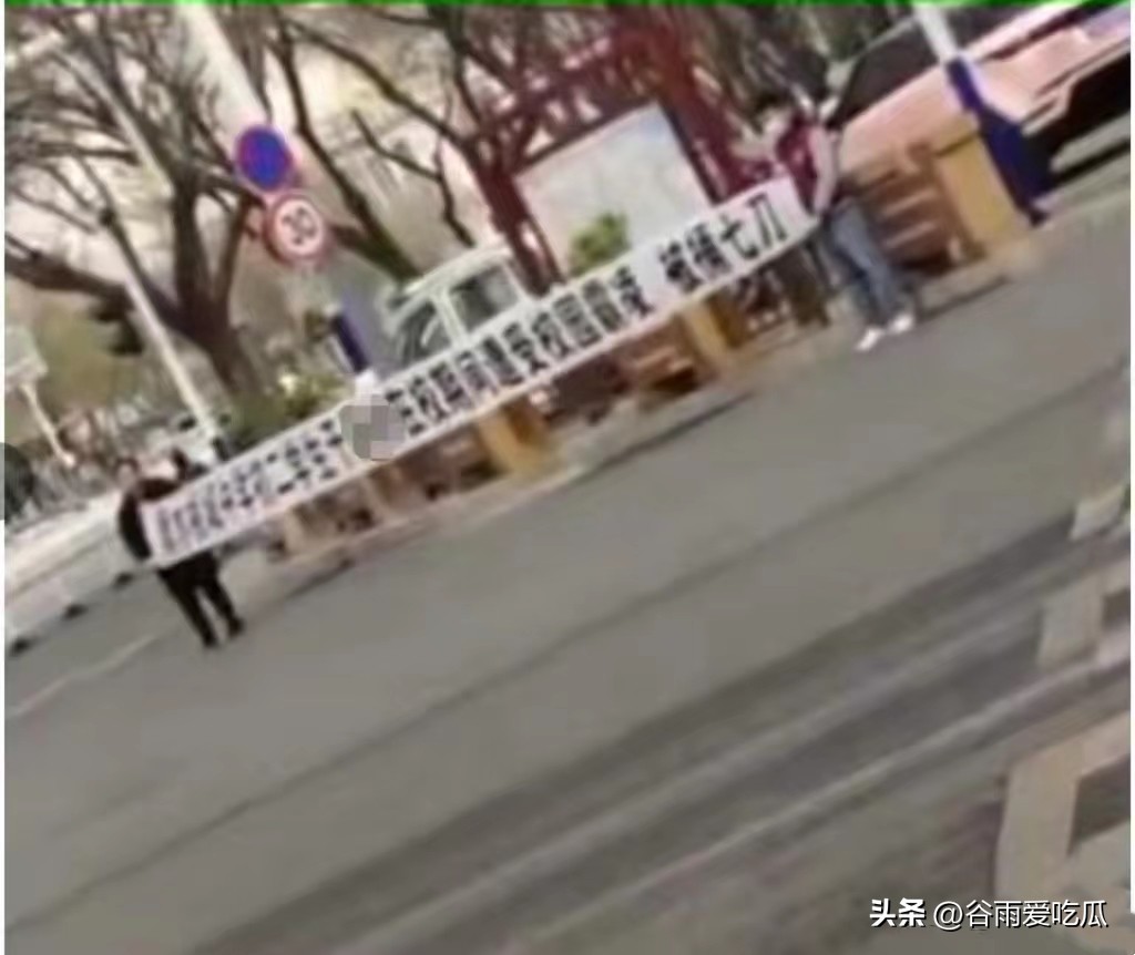 3月23日,有网友拍到,在河北衡水市红旗大街与人民东路交叉口附近,有一男一女拉着横幅,似乎是孩子的亲属。