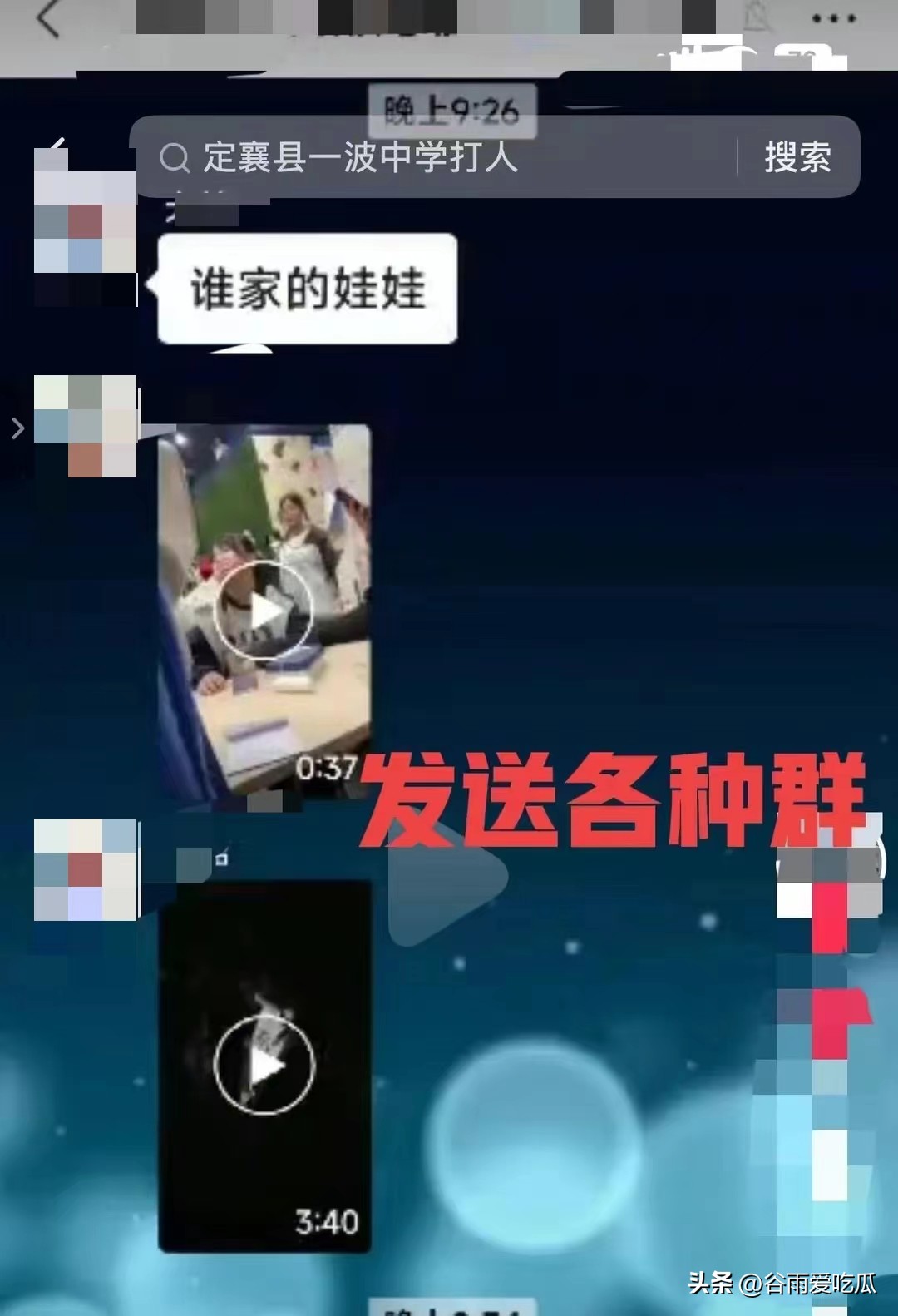 这场霸凌一直持续到天完全黑下,霸凌者还嚣张的将视频传播到各个群里。
