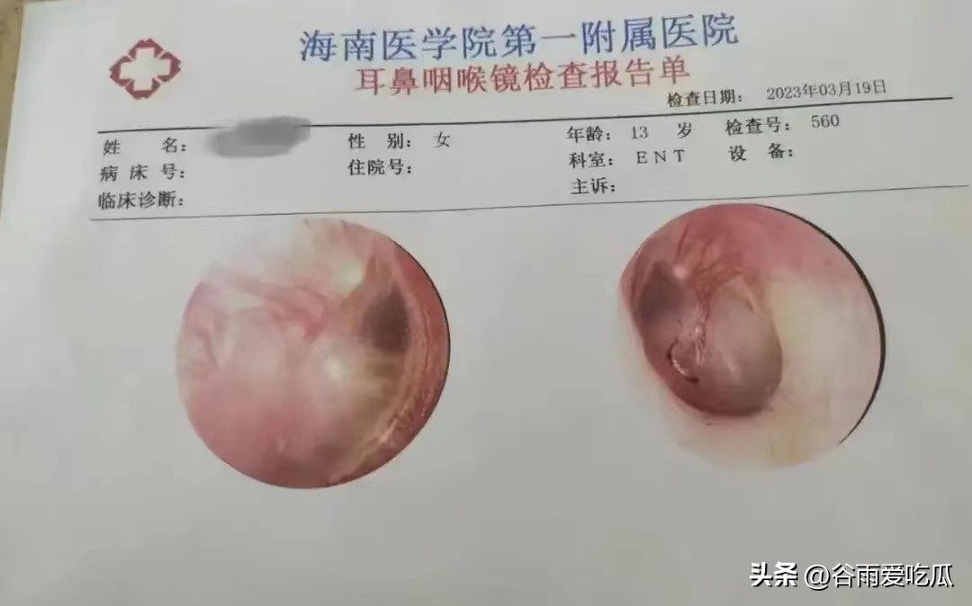 后经医院检查,女孩的左耳鼓膜造成人肉眼可见的明显穿孔,眼睛被异物扎入,造成视力永久性下降,已经模糊到看不清东西了,且无法恢复。