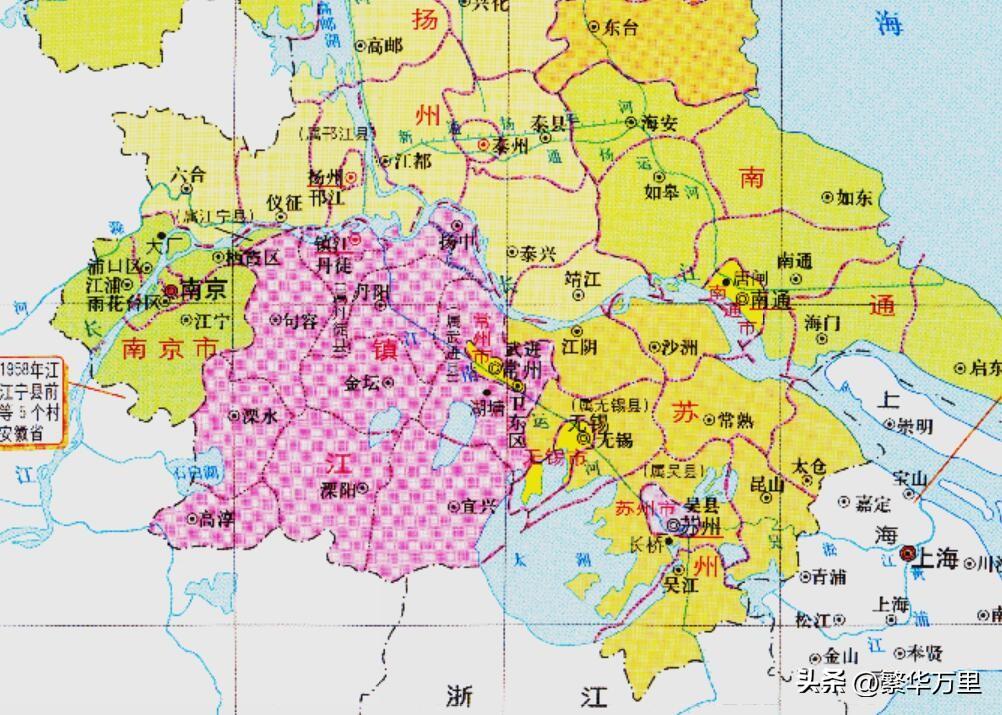 一转眼到了建国之初,大规模战争的基本结束,我国进入了战后重建、发展经济、休养生息的阶段。由于实际管理的需要,江苏省被临时拆分为苏北行署区、苏南行署区。行署区属于建国初期的区划,对标了各个省。