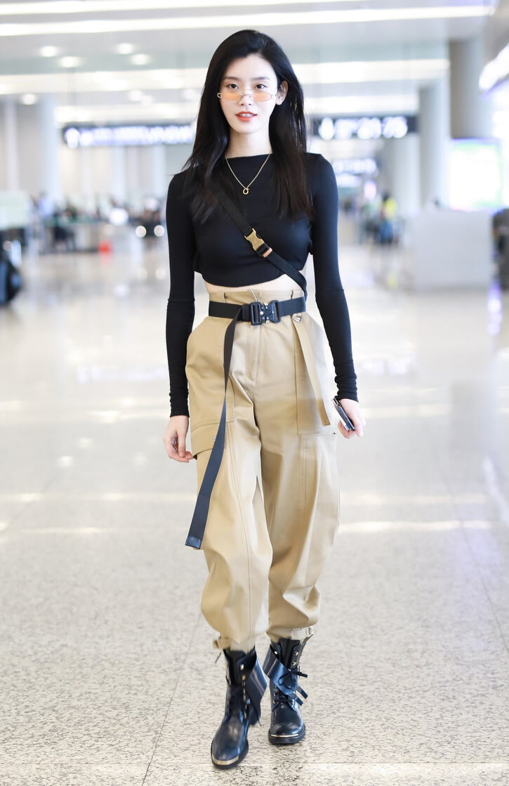 有朋友可能会说,那是不是米色不能和黑色搭配?毕竟黑色可以颜色最深的衣服了.这是不对的.米色裤子是可以和黑色上衣搭配的.因为米色和黑色是一对撞色,这两组合并没有和其他深色组合的那种头重脚轻感.反而有种又酷又高级的感觉.
