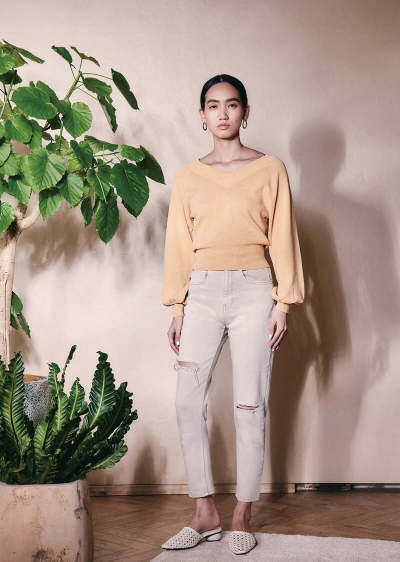 米色是带点黄调的颜色,是个暖色,那和一件淡黄色或浅桔色的大领口针织衫搭配在一起是非常好看的.温暖又清新,而且很大气.