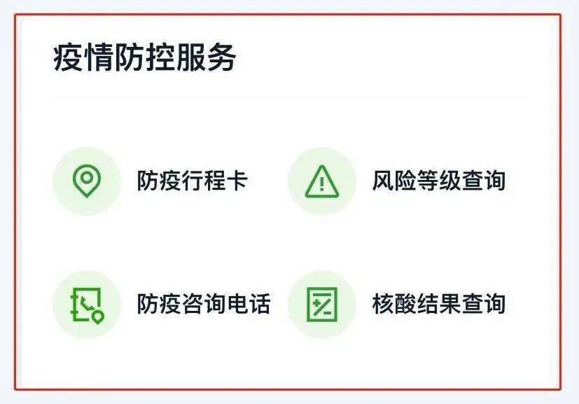 2. 下拉还有防疫行程卡、风险等级查询等常用疫情防控服务,供你不时之需。