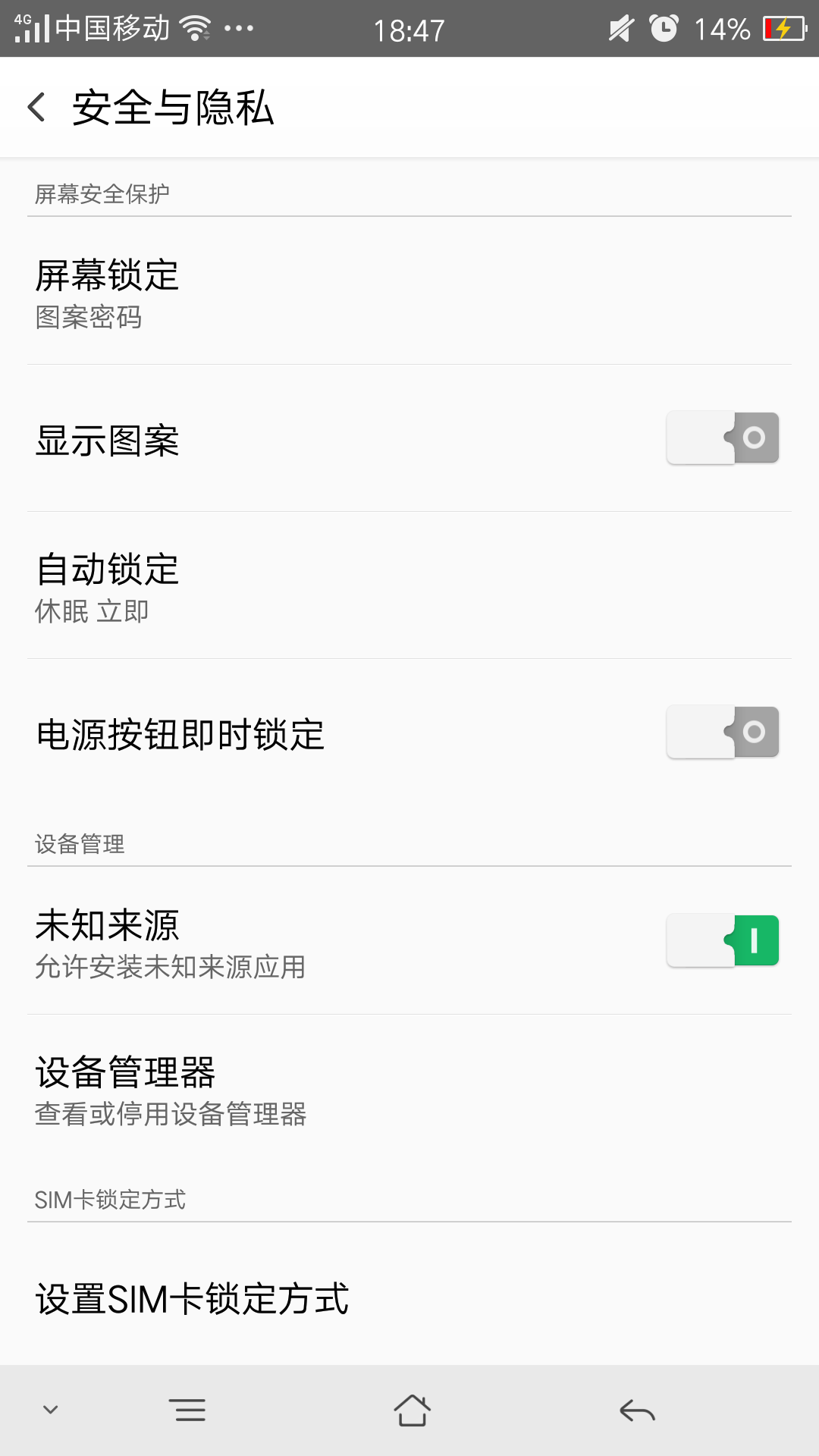 在公众场合下,解锁图案很容易被别人看到。这时你可以在手机设置中,选择安全与隐私——关闭显示图案。这样你在解锁时的图案轨迹就可以隐藏起来了。目前很多手机都是屏幕指纹可以不用担心这个问题,没有指纹识别的OPPO用户要注意啦。