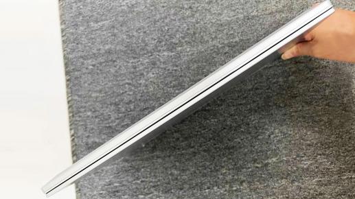 从外观看,code01的模具与机械革命以往本子的模具类似,尤其是a面d面的设计,几乎未做任何更改。简单来说,机器的a面是一块完整的金属外壳,银色本色,做了一定磨砂处理,看着十分细腻。这种材质的优点是细腻轻薄,千人一面,缺点是在没有防护的情况下,非常容易产生刮痕,也很惧怕摔痕,一旦摔伤,只能更换壳面。机器a面边角处有一个产品logo,激光镭射,银色镜面,反射角小,十分光亮,在很多旗舰机型里出现过。
