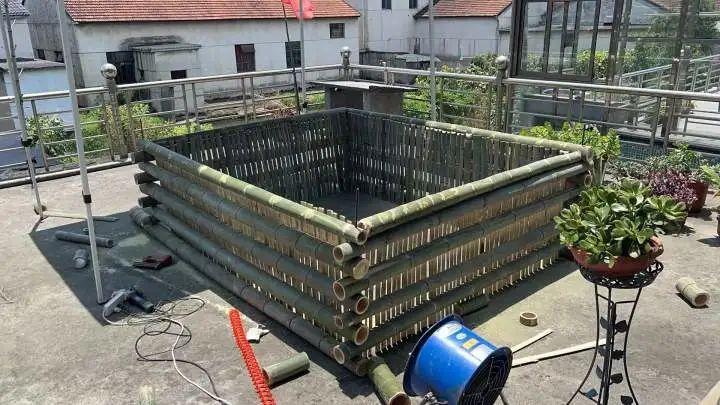 等到秋天,孩子们不用了,泳池拆掉,竹子可以当做家里做饭的柴火烧,也不浪费。