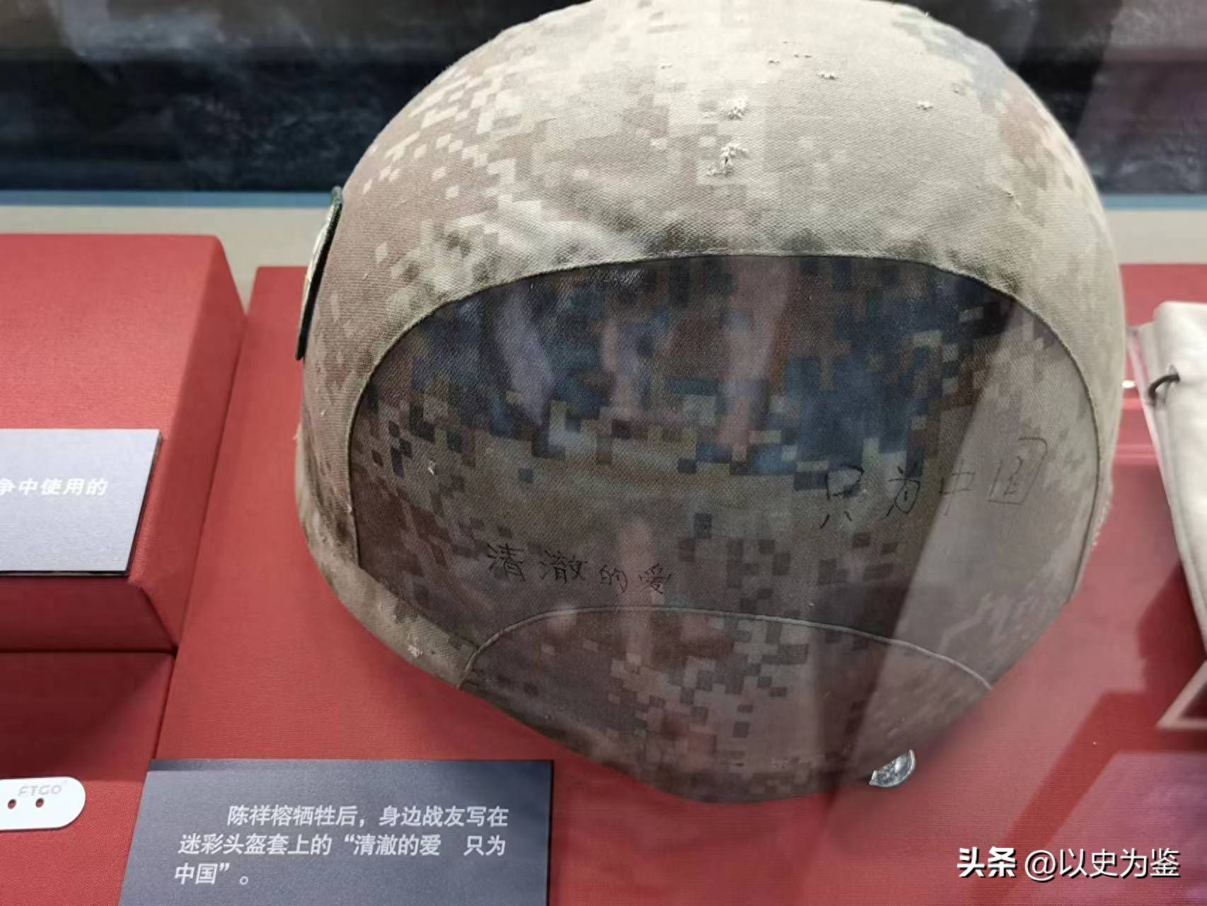 陈祥榕牺牲后,他的战友把“清澈的爱,只为中国”写在了他的头盔上。