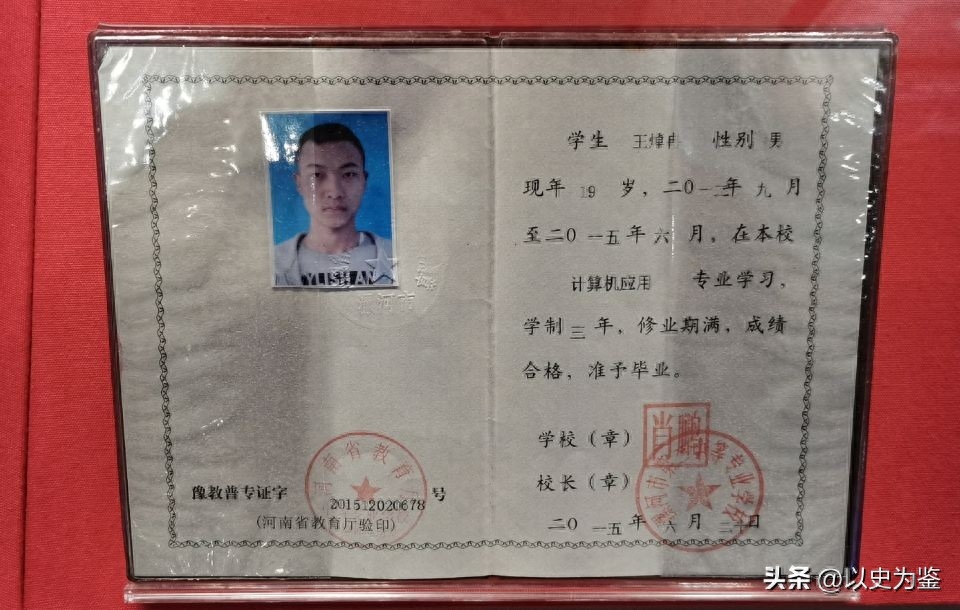 图注:烈士王焯冉的毕业证书