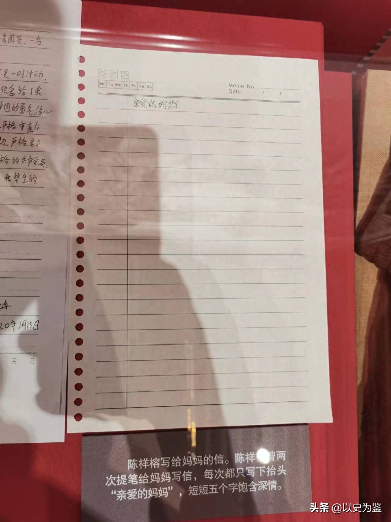 在展柜中,还展出了陈祥榕烈士写给妈妈的信,但是这张信纸上只有一个开头——“亲爱的妈妈”……