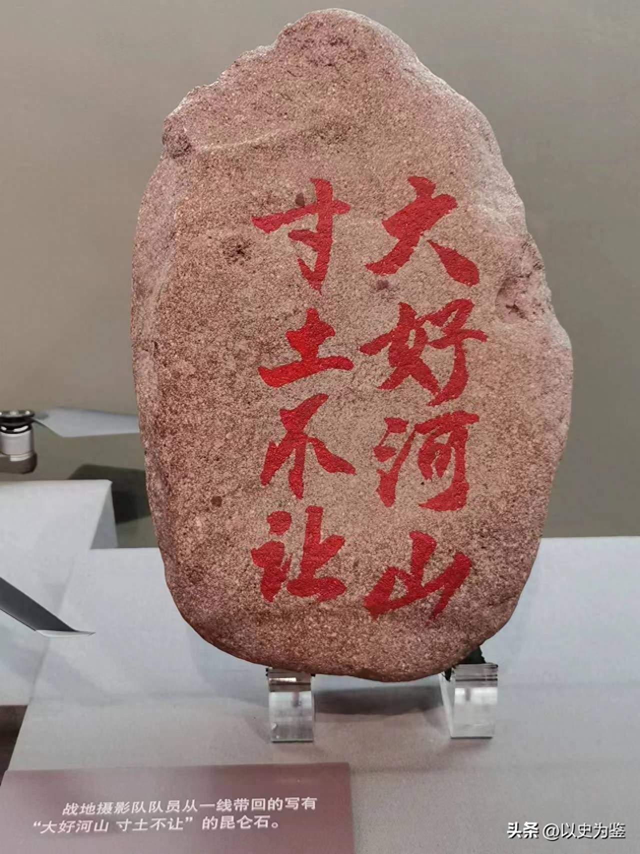 图注:记者从一线取回的写有“大好河山,寸土不让”的石头
