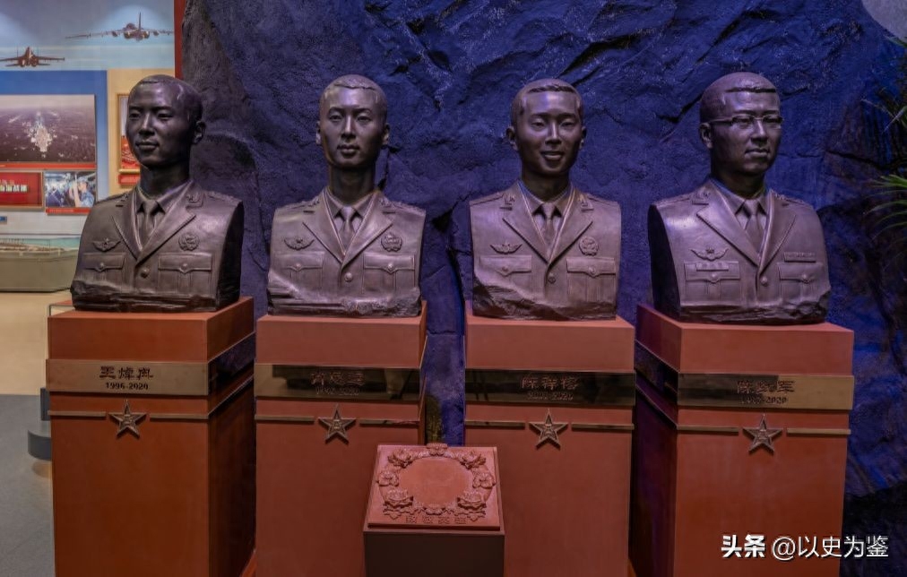 图注:展出的四位烈士的塑像,从右到左分别是陈红军、陈祥榕、肖思远、王焯冉