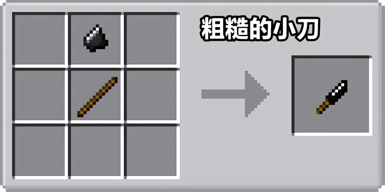 到这里,燧石碎块+木棍=小刀,恭喜你已经获得了第一个工具。