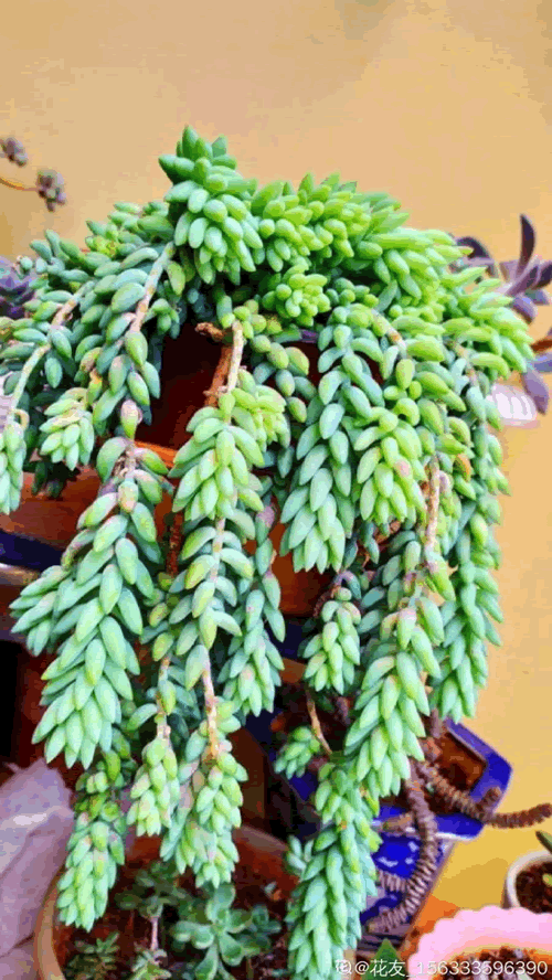 玉缀常在植株底部爆崽,如果碰上不爱爆崽的玉缀,可以把多肉茎秆底部的叶子摘一摘,通常30天内就能见效,狂冒小崽。
