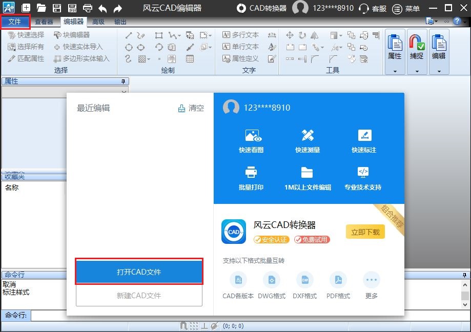 我们今天带来的这款cad文件处理工具叫做《风云CAD编辑器》,支持CAD快速看图、CAD快速测量、CAD快速打印、CAD修补断线等功能,拥有3D、2D空间切换,黑白背景灵活,转换文本内容快速查找,线段、面积快速测量,EMF,BMP格式转换,多角度查看图纸,全部功能围绕图纸审核,一看就会零学习成本,接下来就是小编带来的就是这个工具插入文字的详细步骤流程;