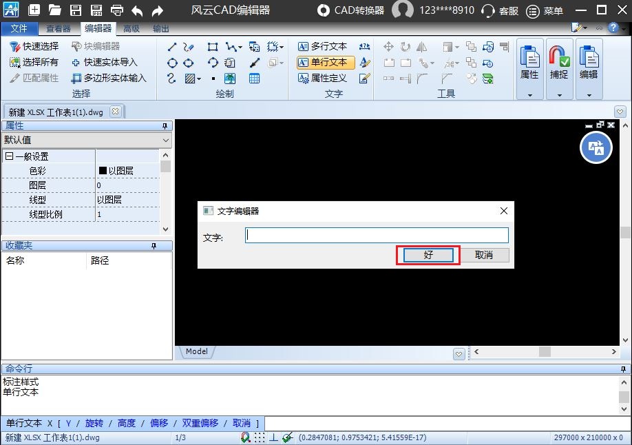 最后,点击【ok】就可以去输入单行文本文字了。