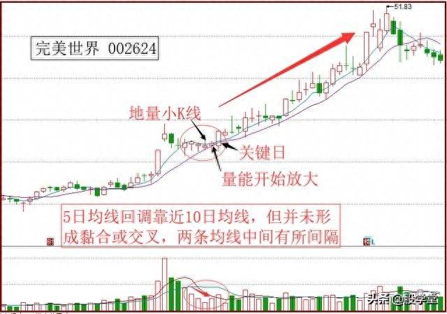 2、5日均线下弯,向10日均线靠拢,但不会下穿10日均线(或下穿幅度非常小,并迅速收回);