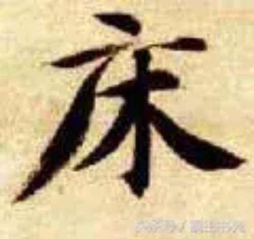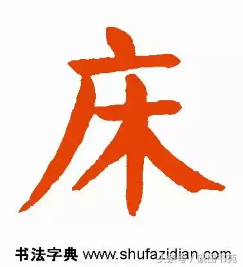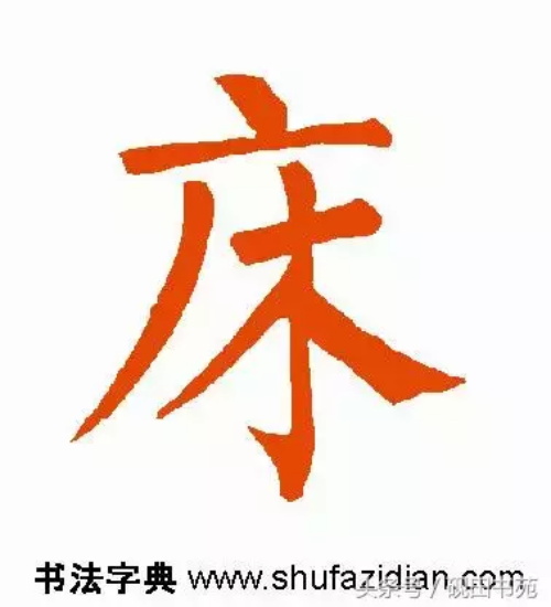 左部“丬”旁略左斜,不要写宽。竖笔斜切起笔,向下略左斜,中间稍细,劲挺有力,收笔可起一小钩;左边竖折勿大,注意起笔位置,竖笔略右斜,横画大抗肩;下面横画起笔稍左探,与上横平行;撇笔起笔与上面短竖直对,撇身勿重、勿长。